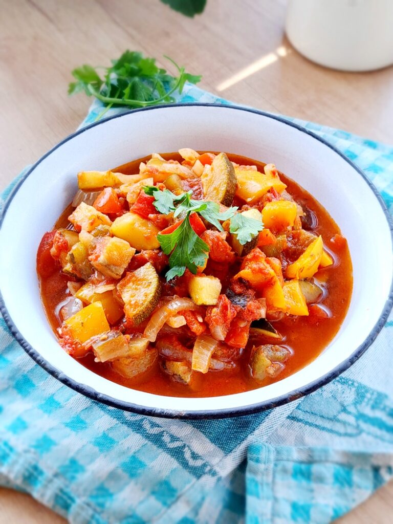 Ratatouille to bardzo smaczny gulasz warzywny z dodatkiem ziół. To potrawa kuchni francuskiej, która przygotowana jest z aromatycznych, świeżych i kolorowych warzyw. W skład ratatuj wchodzą takie warzywa jak cukinia, bakłażan, kolorowe papryki, cebula i pomidory. Całość obsmażana jest na oliwie z dodatkiem czosnku i przypraw. Przyprawa przypomina leczo lub