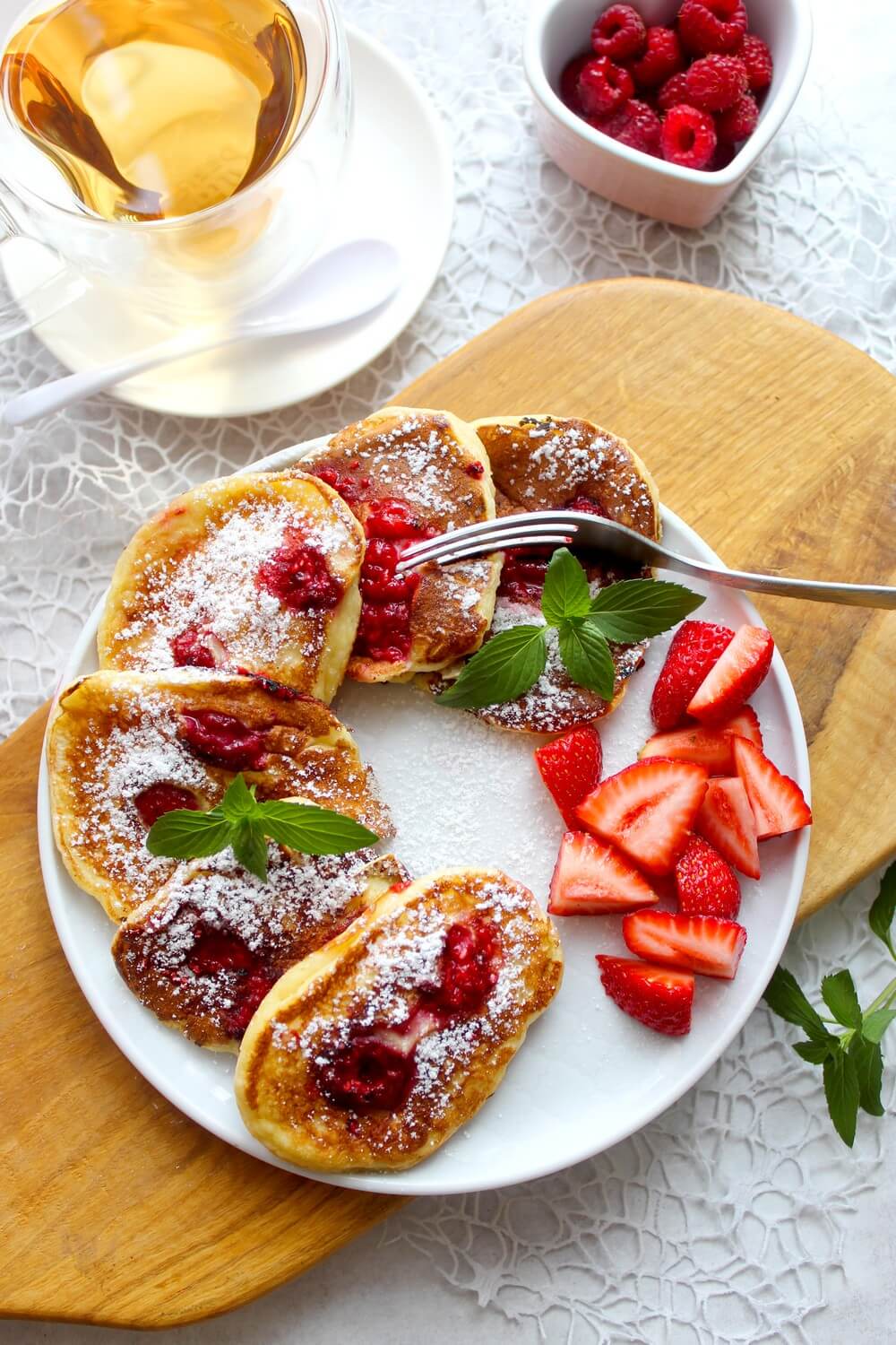 Jak przygotować placuszki z malinami na serku homogenizowanym?