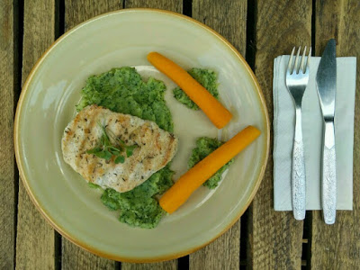Grillowana pierś z kurczaka z marchewką na puree brokułowym