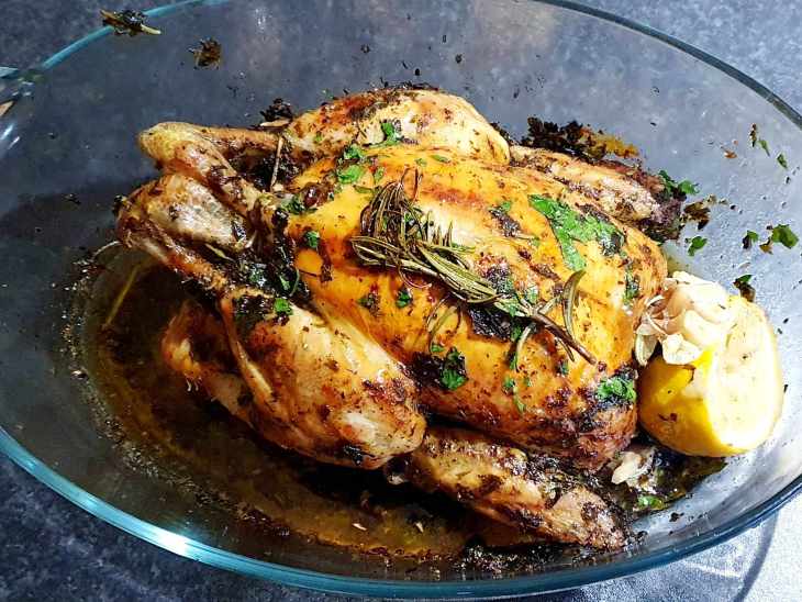 Nic nie przebije łatwego do wykonania i jeszcze łatwiejszego w przygotowaniu pieczonego kurczaka! Szczególnie jeśli pieczony jest on na czosnkowo – ziołowym maśle z dodatkiem rozmarynu, pietruszki, cytryny i z nutą białego wina. Dzięki tym dodatkom uzyskujemy niezrównany smak. Danie godne niedzielnego obiadu, podany z pieczonymi ziemniakami będzie smakował