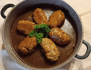 600 g mięsa mielonego wieprzowego1 jajko3 łyżki bułki tartej300 g szpinaku świeżego2 duże ząbki czosnku6 pomidorów suszonych1 duża cebula 1 duży liść laurowy 4 kulki ziela angielskiegoKilka kropel cukru klarowanego1 1/2 szklanki bulionu Łyżka oleju czosnkowego ( Kujawski )Łyżka oliwy z oliwek lub oleju 200 ml zimnej wody