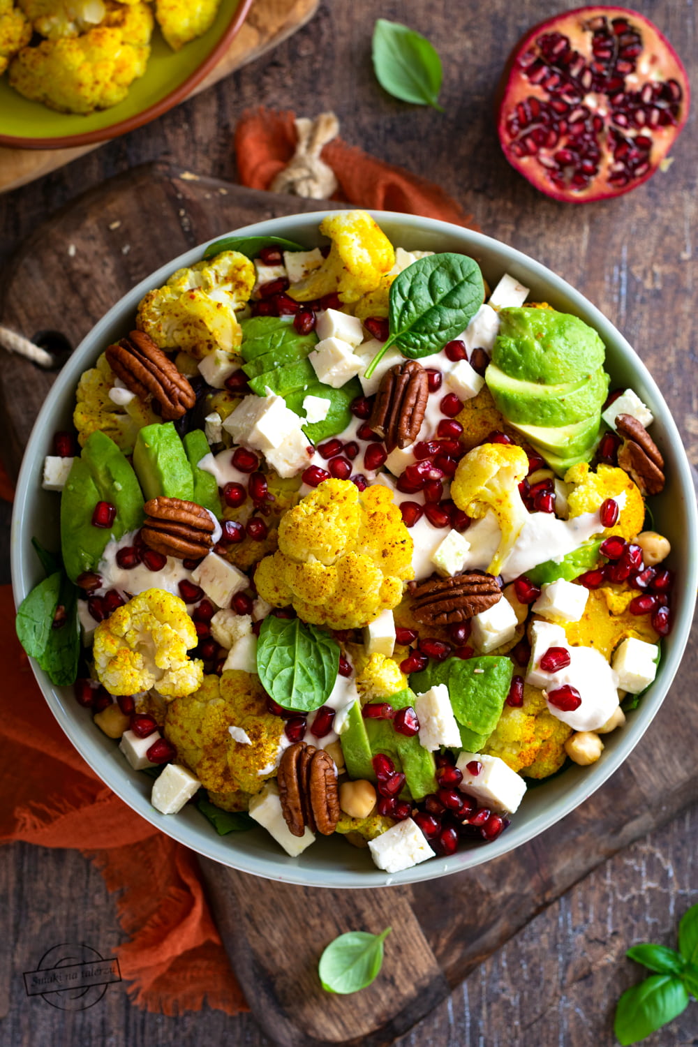Sałatka z pieczonym kalafiorem, awokado i fetą