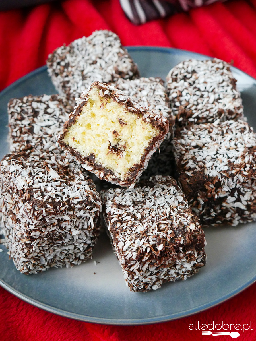 Kostki kokosowe (znane również jako kudłacze lub lamingtony) to pyszne ciastka biszkoptowe oblane czekoladową polewą i obsypane wiórkami kokosowymi. Idealnie sprawdzą się na święta lub do popołudniowej kawy czy herbaty. Są proste i szybkie w przygotowaniu. Zapraszam na przepis na obłędnie pyszne domowe kostki kokosowe!