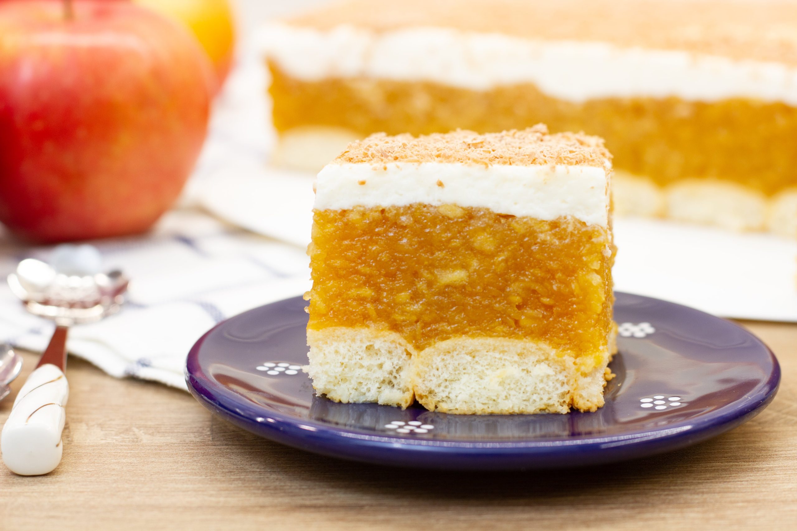 Szarlotka bez pieczenia z bitą śmietaną to proste ciasto na biszkoptach, które przygotujesz bez piekarnika. Ta szarlotka jest wilgotna, jabłka są miękkie i soczyste a całość smakuje wyśmienicie. Przygotowanie szarlotki bez pieczenia zaczynam od obrania, starcia na tarce i usmażenia jabłek. Do usmażonych jabłek dodaję galaretkę w proszku, studzę i