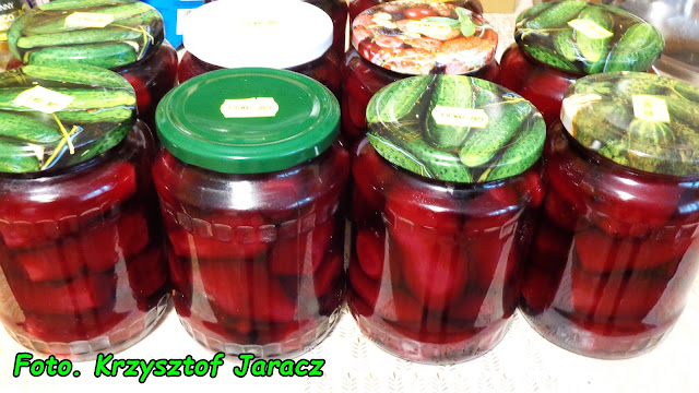 Buraczki umyj, ugotuj do miękkości, obierz ze skórki. Do każdego słoika wrzuć przyprawy ( 1-2 listki laurowe,