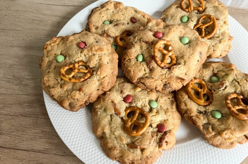 Wymarzone mega ciastka dla Mikołaja. Perfekcyjne maślane ciastka z białą czekoladą, chrupiącymi wafelkami tortowymi, słonymi preclami i M&M’s. Przepis na ciastka przygotowałam z myślą o wizycie świętego Mikołaja, żeby podtrzymać rodzinną tradycję. Córka z moją pomocą napisała swój pierwszy w życiu list do Mikołaja, zostawiła go na parapecie wraz z
