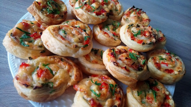 Składniki: Opakowanie ciasta francuskiegoSerek śmietankowy kanapkowy 100 gSer żółty starty 100 gSzynka…