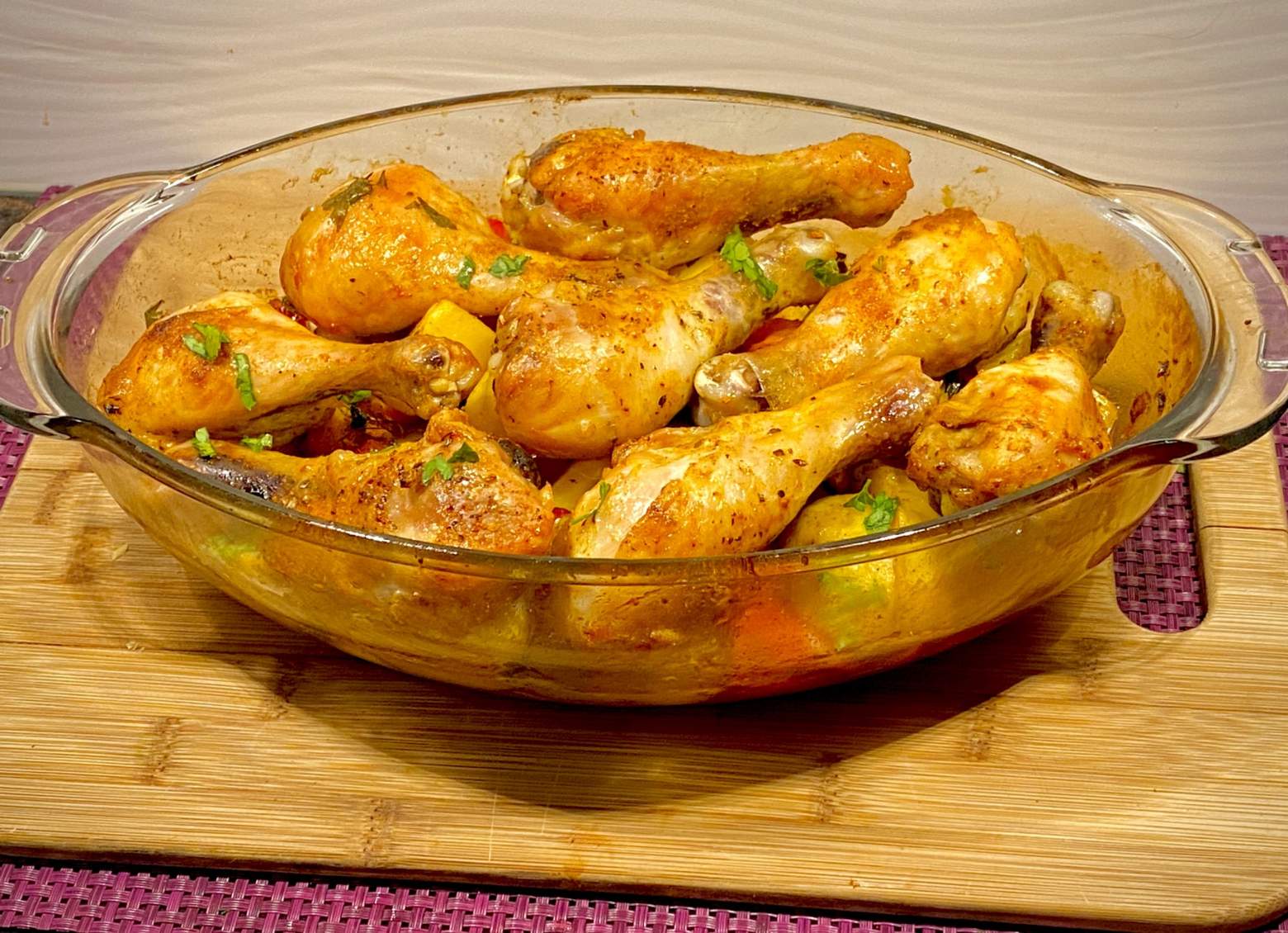 Pałki z kurczaka pieczone z ziemniaczkami, marchewką i papryką Pyszny i kolorowy…