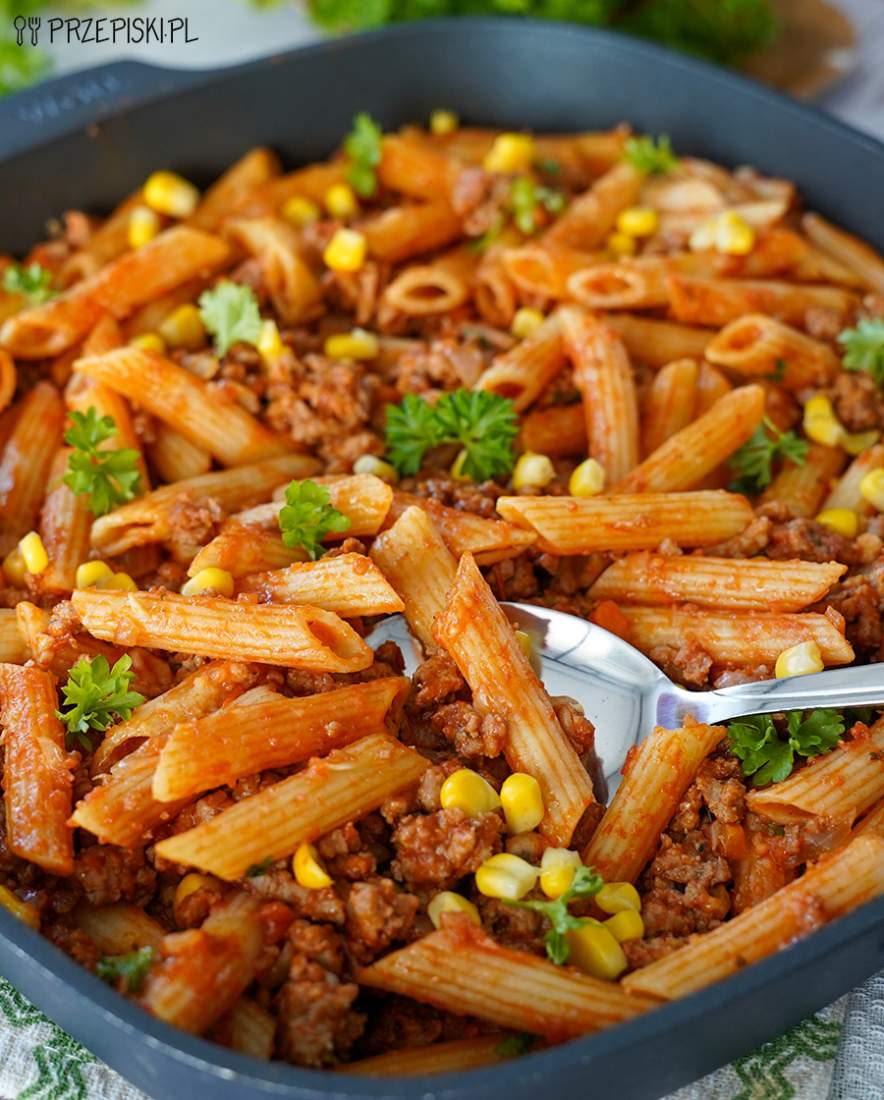 Makaron z mięsem mielonym z patelni to super pomysł na szybki obiad jednogarnkowy. Ta zapiekanka makaronowa z patelni jest niesamowicie prosta do zrobienia, szybka i smaczna.