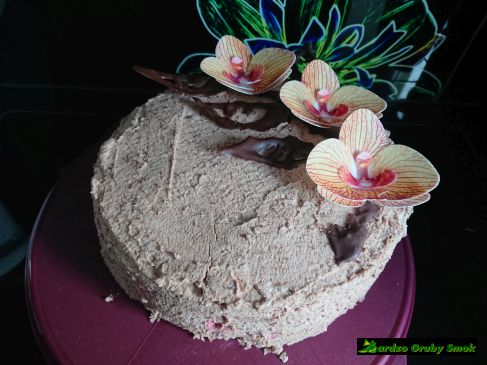 Tort orzechowy z wiśniami i czekoladą