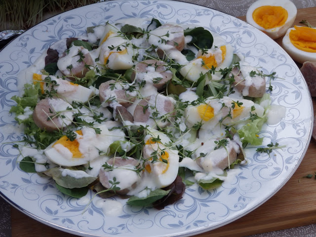 Sałatka z jajem i białą kiełbasą to sałatka z wielkanocnych resztek. Zebrałam…