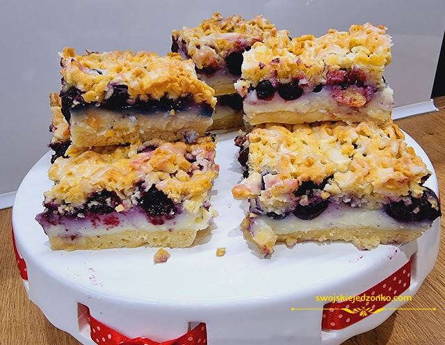 Cudowne, mięciutkie ciasto z budyniem i owocami – u mnie borówki, ale…