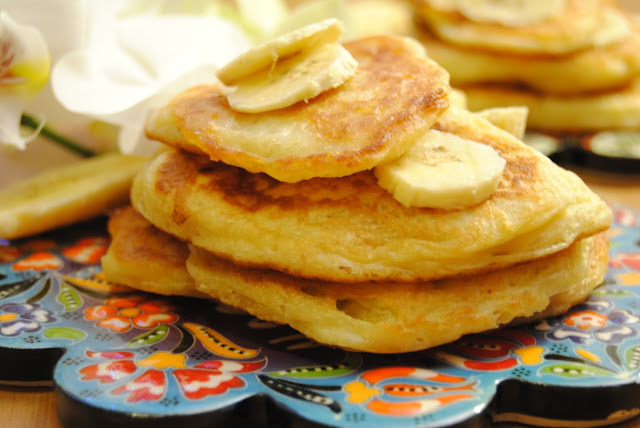 Jogurtowe racuchy drożdżowe z bananami; drożdżowe racuchy z jogurtem