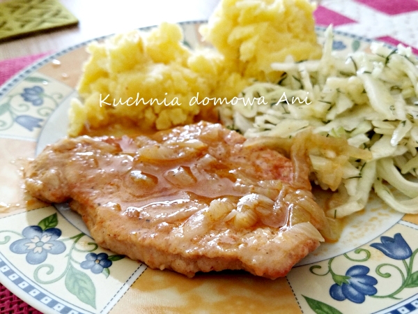 Pyszny, aromatyczny, kruchutki schab duszony w cebuli. Powstały sos można zagęścić mąką, ale ja akurat tego sosu nie zagęszczam.