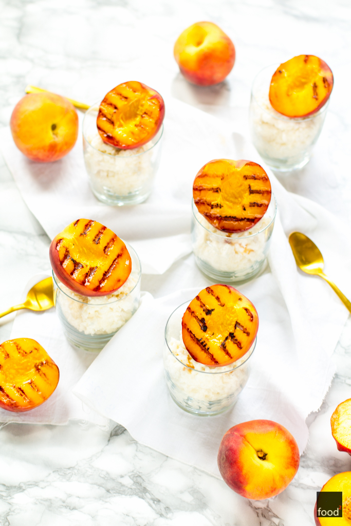 Pudding ryżowy z kardamonem i grillowanymi brzoskwiniami