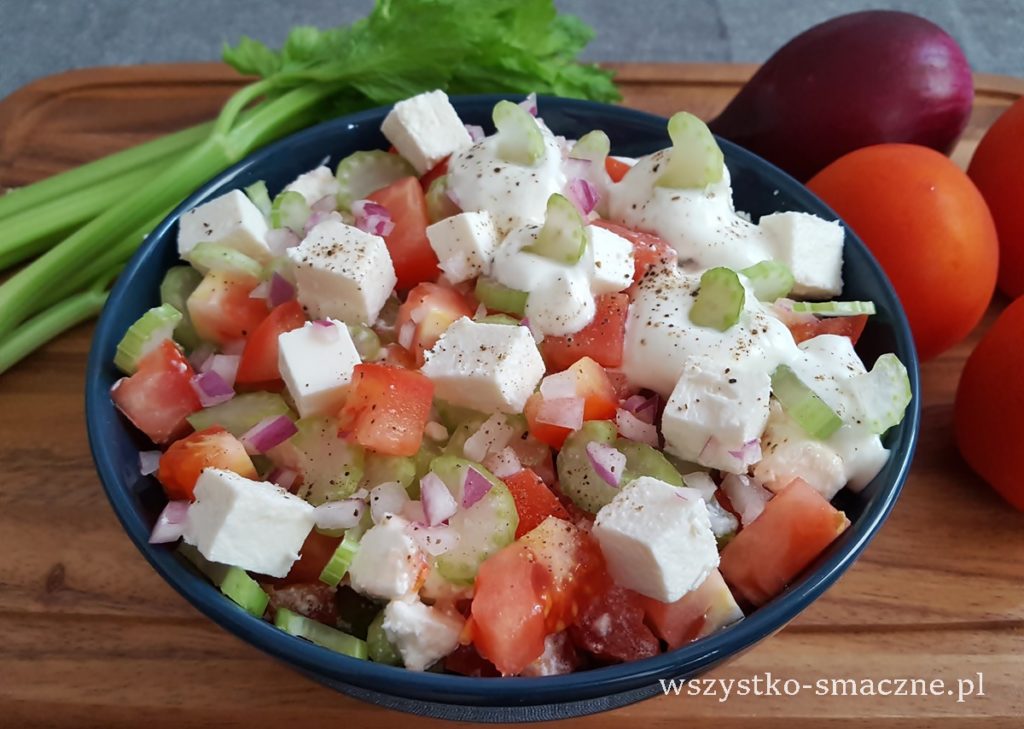 Sałatka z pomidorami, selerem naciowym i serem feta Sałatka z pomidorami, selerem…