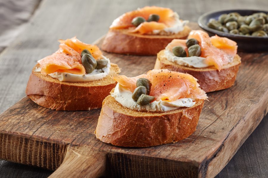 Opis Bruschetta z wędzonym łososiem: Bruschetta z wędzonym łososiem to typowa włoska…