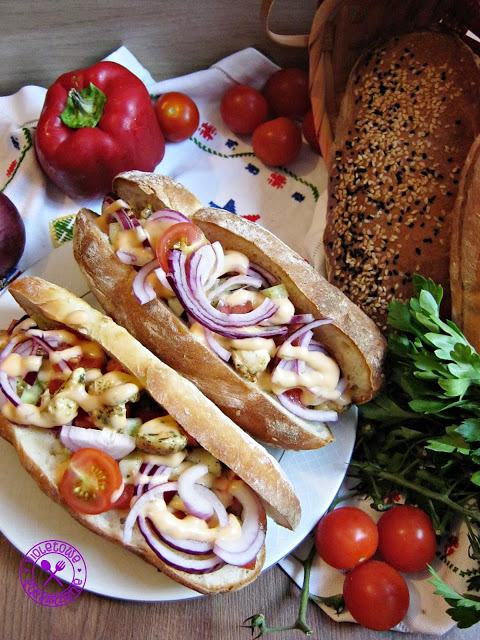 Domowy fast food z domowymi bagietkami i ostrym kurczakiem marynowanym w białym…