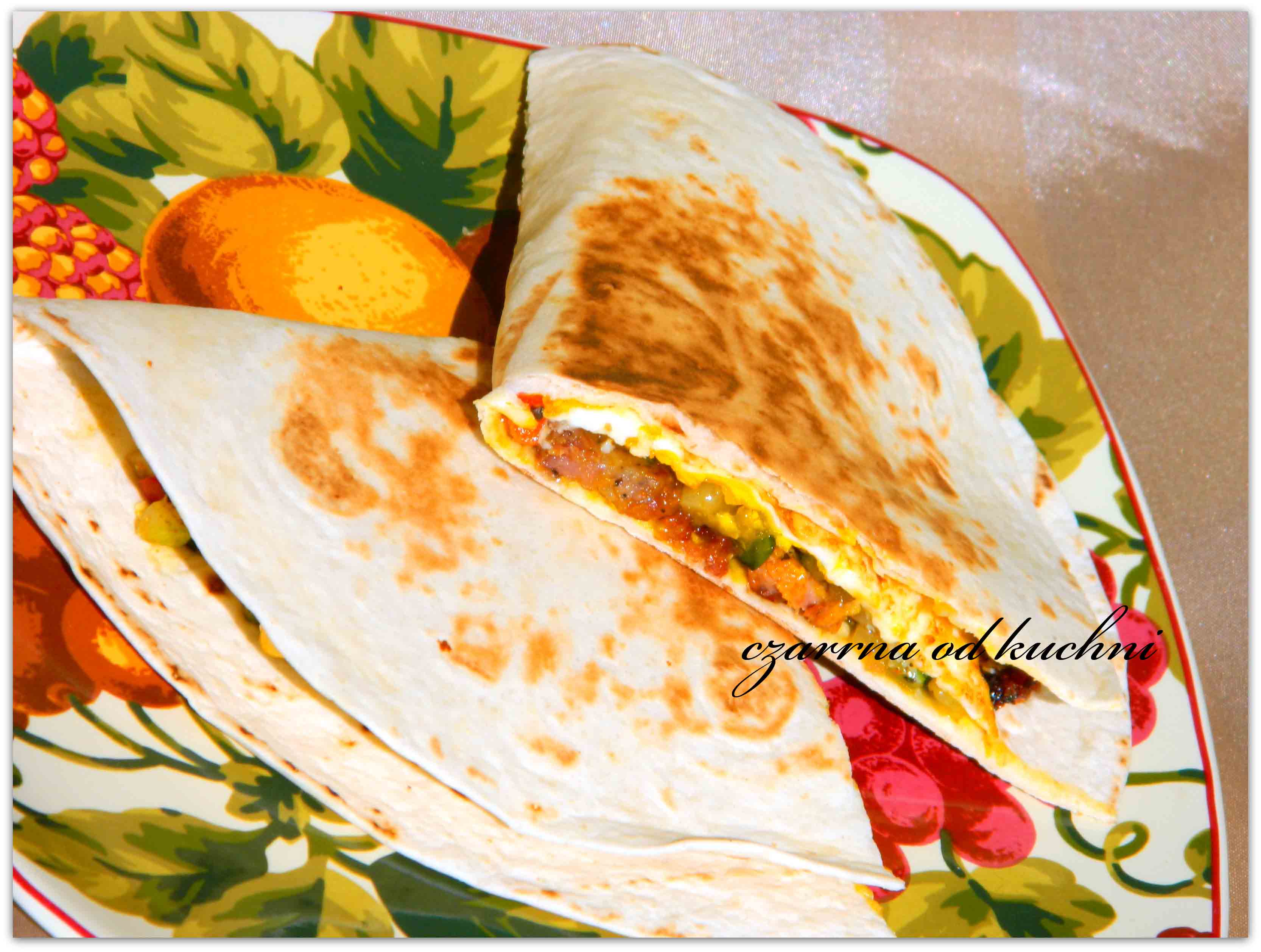 Coś innego na śniadanie. Składniki 4 placki tortilli 1/2 cukinii 1 papryka…