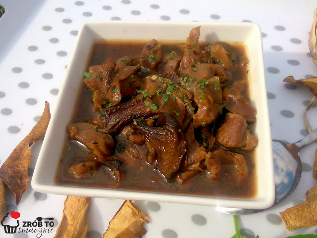 GULASZ Z ŻOŁĄDKÓW DROBIOWYCH I SUSZONYCH GRZYBÓW LEŚNYCH