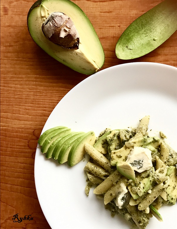 Penne ze szpinakiem, serami i awokado