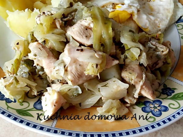 Kurczak duszony w młodej kapuście