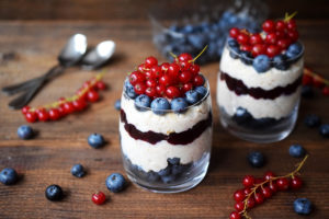 Śniadaniowa owsianka z borówkami i porzeczkami