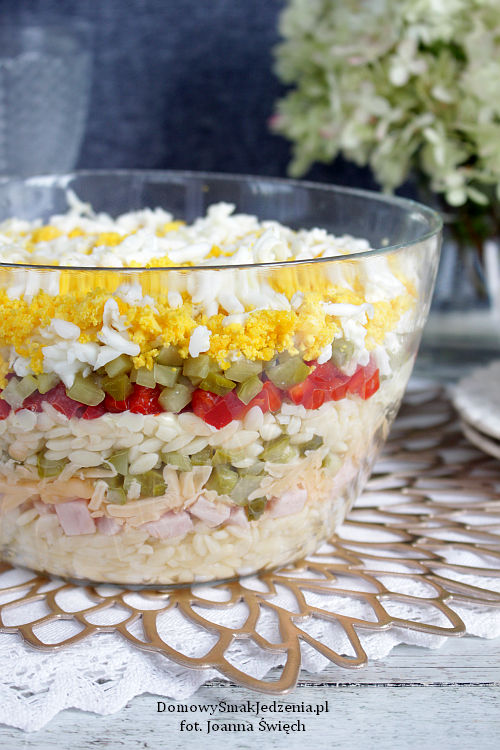składniki:150 g makarony drobnego np. w kształcie ryżu4 jajka100 g sera żółtego150…