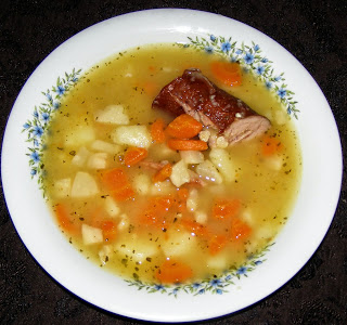 Składniki: groch 25 dag, włoszczyzna 1 pęczek, ziemniaki 8 sztuk, kiełbasa wiejska…