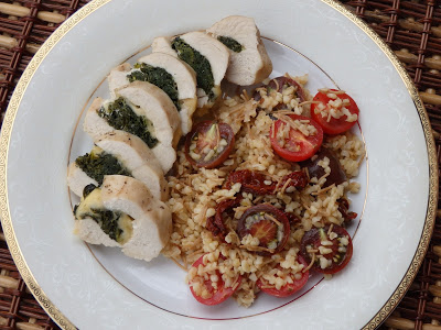 Piersi kurczaka nadziałam jarmużem oraz żółtym serem. Gotowe kieszonki można podać polane…