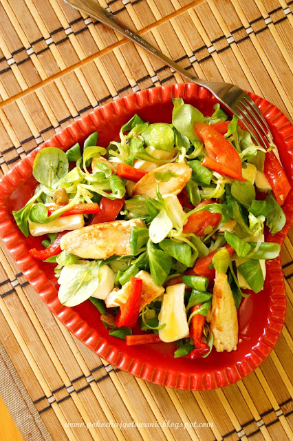 Składniki:– 1 pojedynczy filet z kurczaka– 1/2 pomidora– 1/2 czerwonej papryki– 3/4…