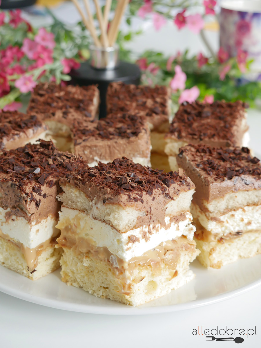 Pomysł na pyszne i prawdziwie wykwintne ciasto z masą migdałowo-kajmakową, kremem śmietankowym…