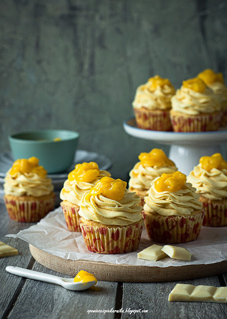 Zamarzyły mi się babeczki mango z kremem mango, najlepiej jeszcze nadziane jakimś musem czy frużeliną ze świeżego owocu mango…I tak powstały one – babeczki, które zarówno w cieście jak i w kremie zawierają puree z mango, a żeby nie było zbyt mało mango 😉 upieczone babeczki są wydrążone i