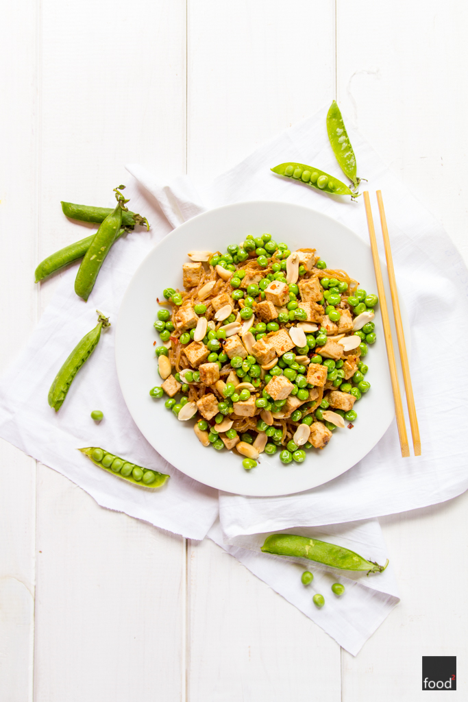Low-carb pad thai z makaronu z alg morskich z tofu i zielonym groszkiem