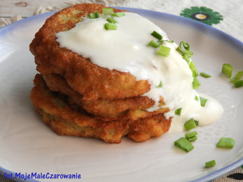 Zrobiłam deruny bo uwielbiam placki ziemniaczane a deruny właśnie są ukraińską wersją moich ulubieńców. Podaje się je na Ukrainie na śniadanie, obiad czy kolację, tak przynajmniej mówią znani mi Ukraińcy. Podaje się deruny z kwaśną śmietaną i żeby je zrobić należy zetrzeć ziemniaki na bardzo miałko czyli na najmniejszych oczkach