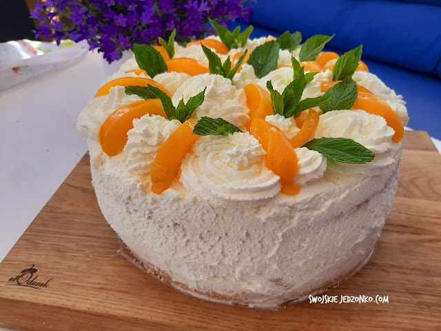 Tort śmietanowy z brzoskwiniami i kajmakiem
