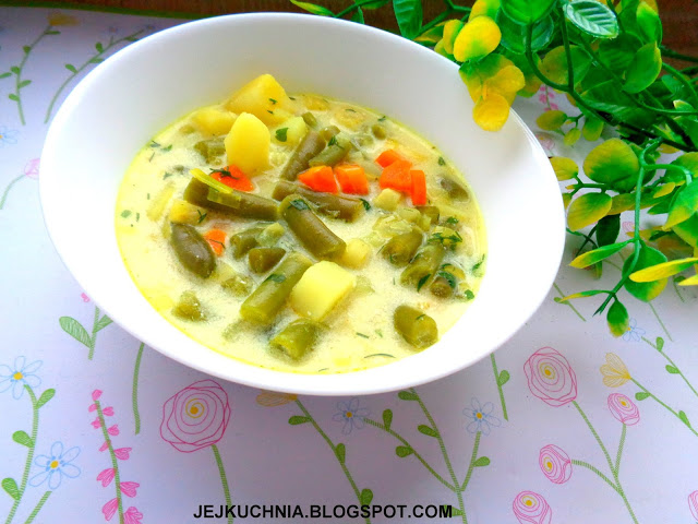 Zupa krem z ziemniakami, włoszczyzną i chrzanem. Podana z boczkiem i jajkiem…