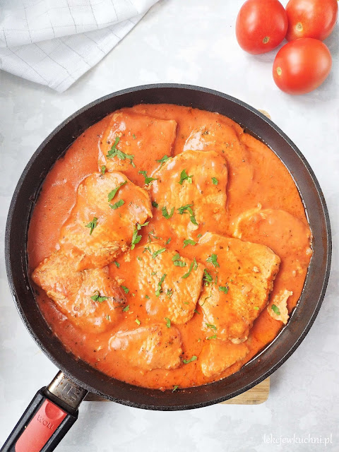 Schab w sosie pomidorowo-śmietanowym Szukacie łatwego przepisu na obiad ze schabu? Dzisiejszy…