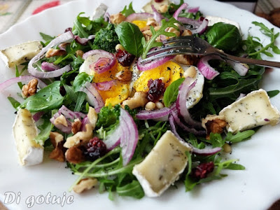 Sałatka na rukoli (z brokułem, jajkiem i bakaliami)