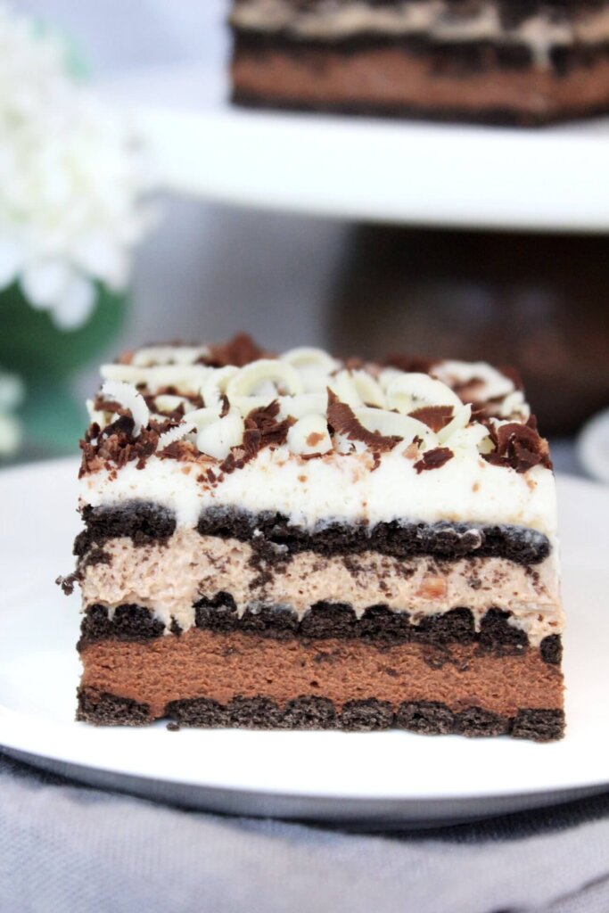 Przepis na ciasto Merci na herbatnikach to potrójnie czekoladowe ciasto bez pieczenia…