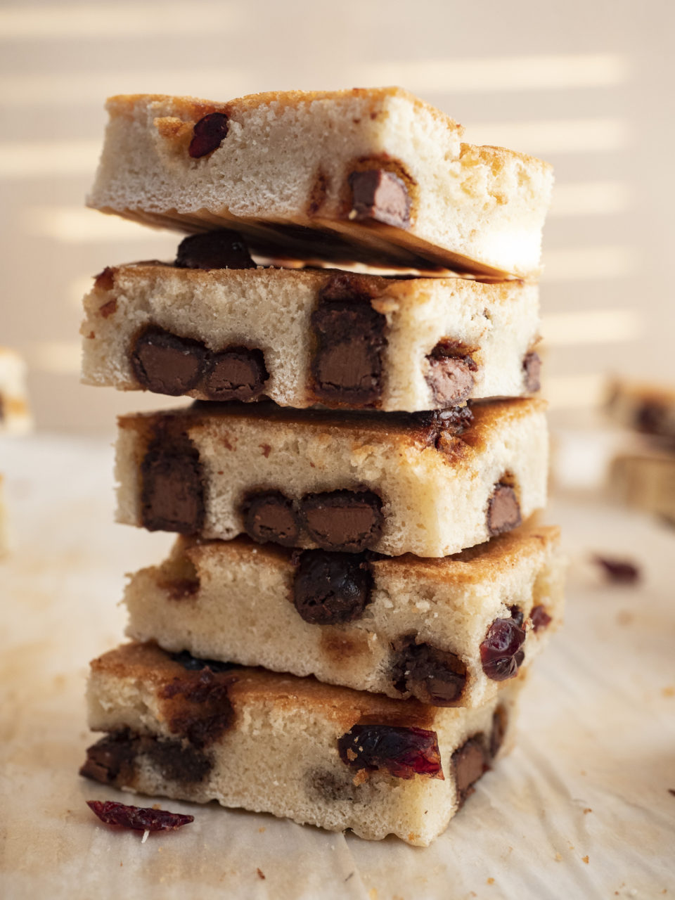 Waniliowy biskwit z czekoladą i żurawiną