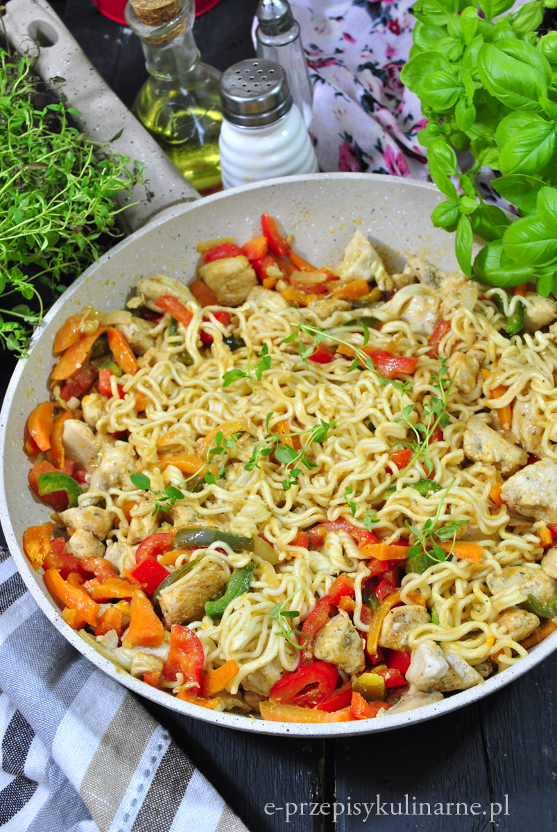 Makaron noodle z kurczakiem i warzywami