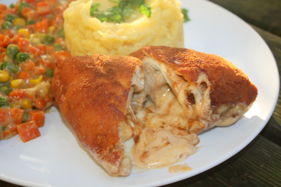 Gorący kotlet z którego po przekrojeniu wypływa serowa lawa z sosem BBQ…