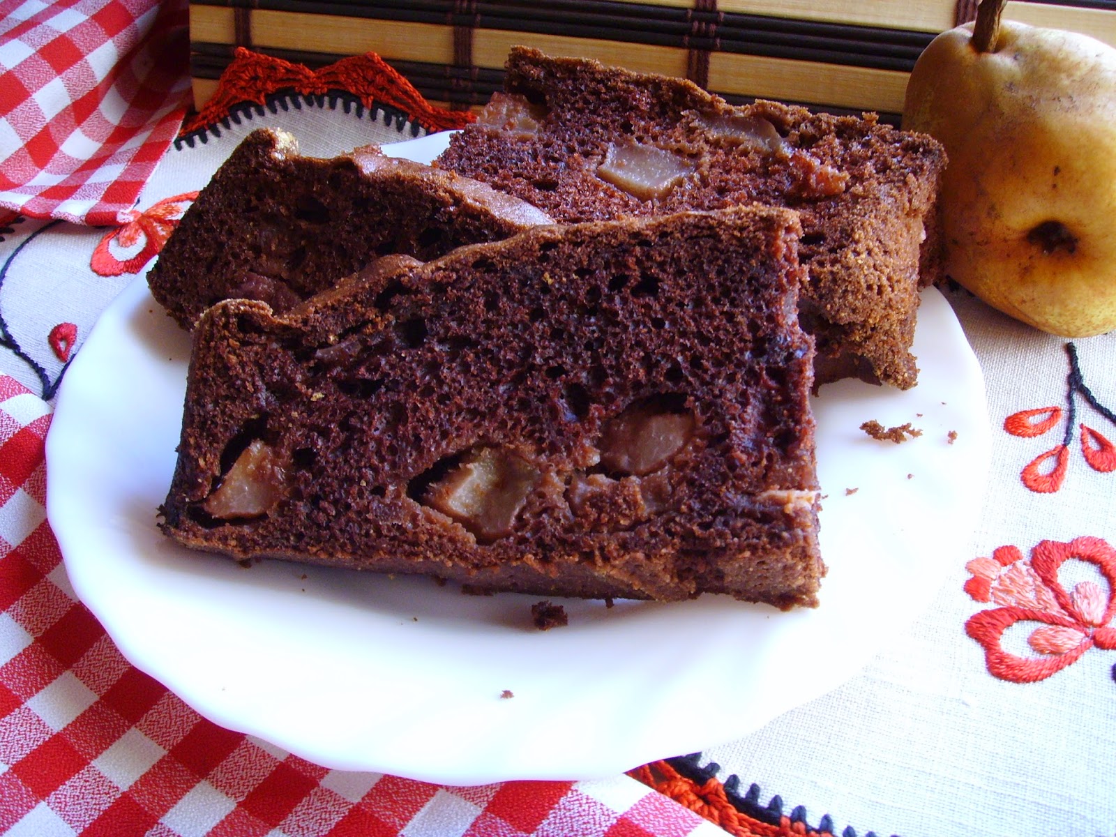 Szybkie ciasto kakaowe z gruszkami.
