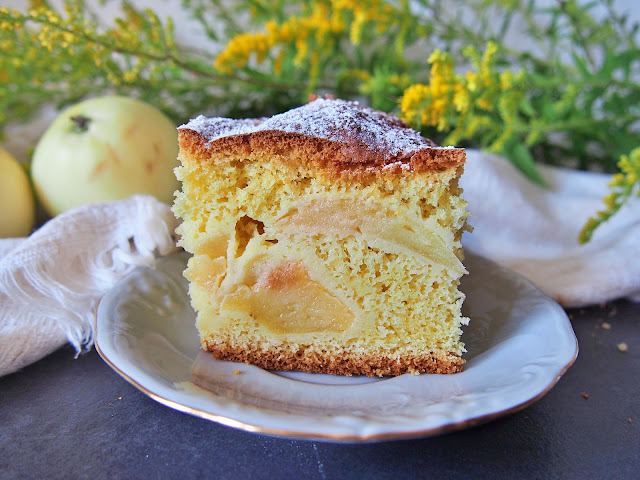 To ciasto było tak dobre, że pół blaszki zniknęło tuż po upieczeniu. Dlatego tez muszę zapisać ten przepis dla siebie, bo w takiej wersji ciasta ucieranego z jabłkami jeszcze nie robiłam, a wyszło po prostu obłędnie. Delikatne, puszyste i mięciutkie z wyczuwalną maślaną nutą i mnóstwem jabłek,