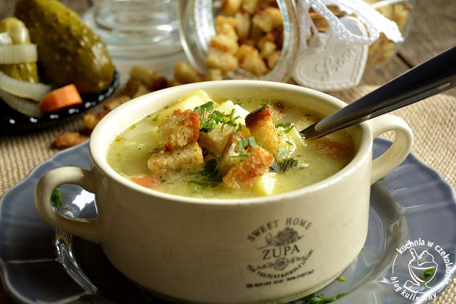 Ogórkowa z ziemniakami i grzankami