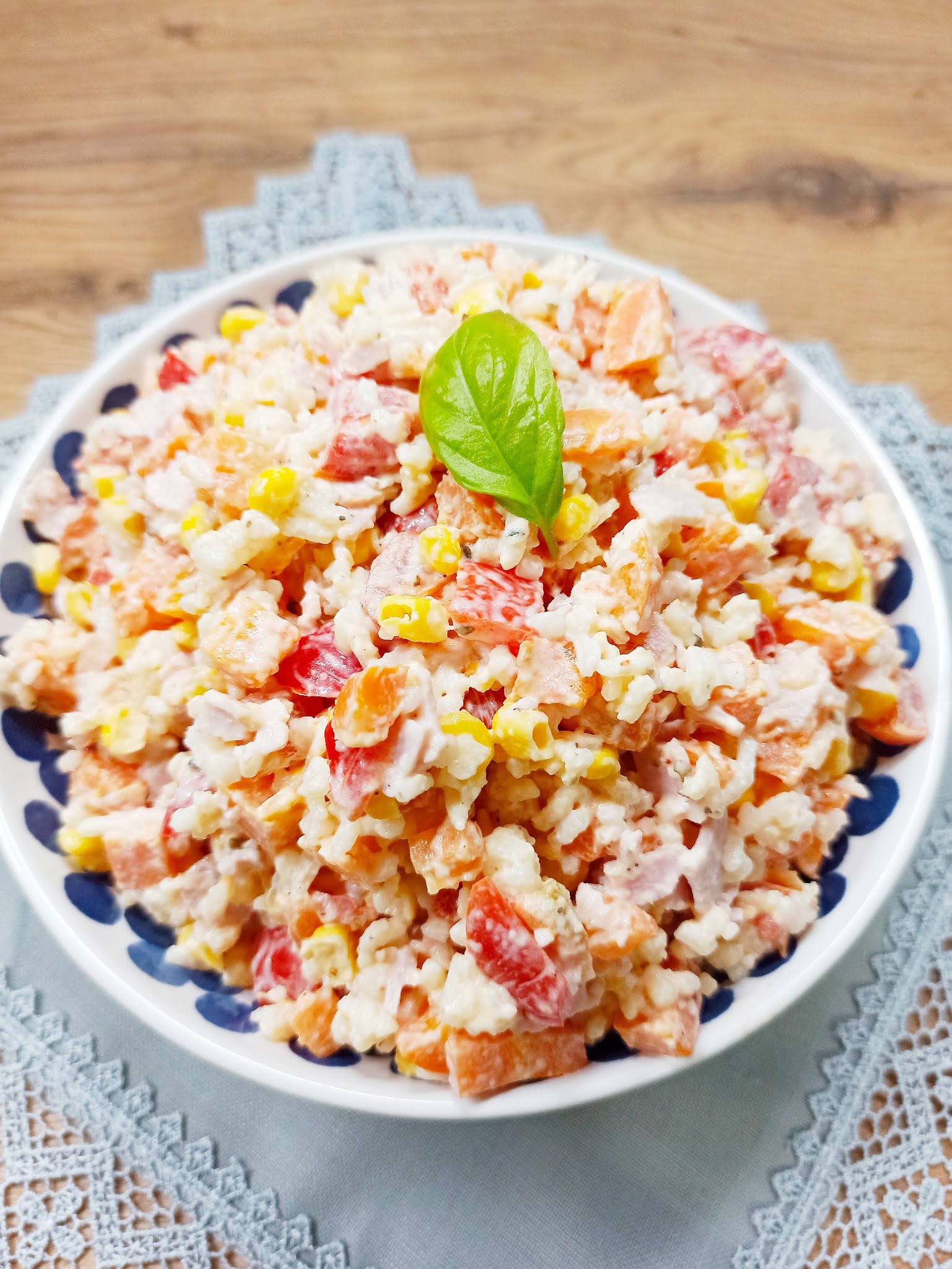 Sałatka ryżowa z szynką, marchewką i papryką