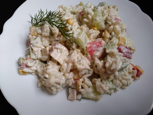 Surimi czyli paluszki krabowe to świetnydodatek do sałatek. Dziś połączyłam je razem…