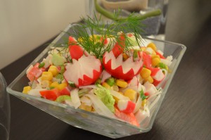 ,,Wiosenna sałatka z paluszkami krabowymi i makaronem ryżowym”