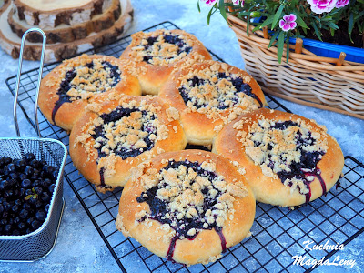 Słodkie bułeczki drożdżowe pełne świeżych jagód, posypane po wierzchu kruszonką. Pyszne, mięciutkie…